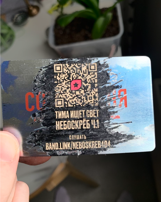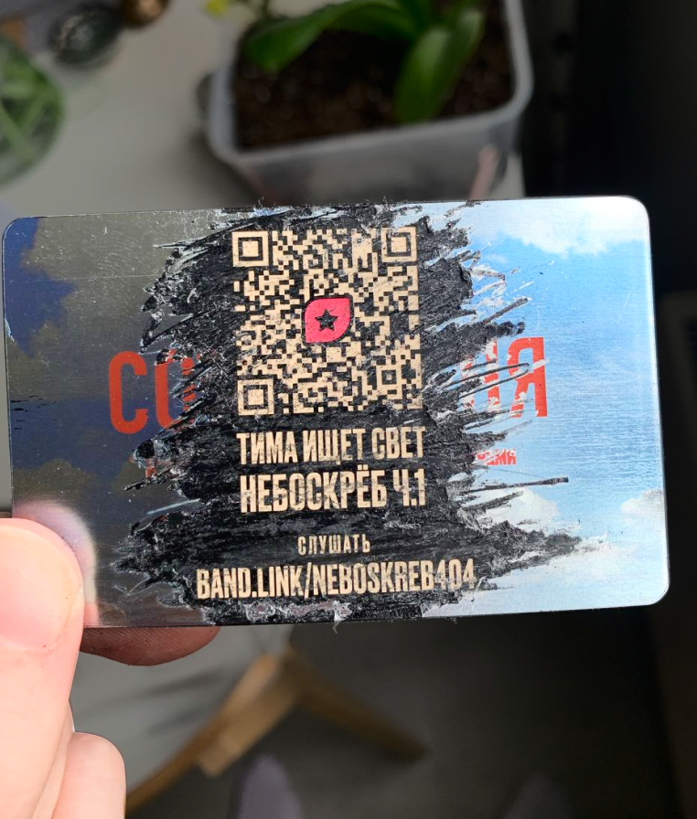 Третий — карточки «Сотри небо» буквально обыгрывали название альбома и само слово «небоскрёб». Людям нужно было физически соскребать изображение неба, чтобы добраться до QR-кода со ссылкой на стриминги.